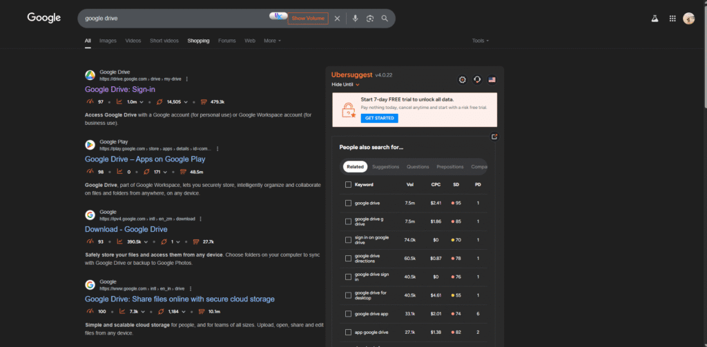 In the above image, you can see the result related to your search At the first result, you can see the Google Drive.