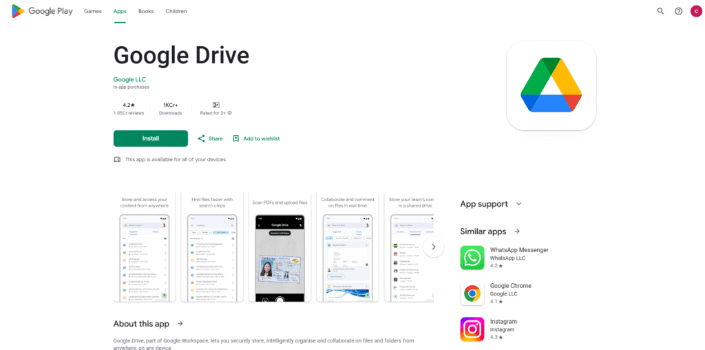 Best for: backing up photos, videos, PDFs, and WhatsApp data.