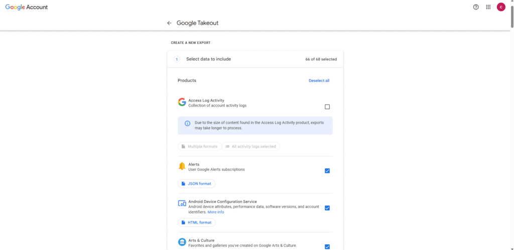 Best for: exporting all your data (Drive, Gmail, Photos, Calendar, etc.)