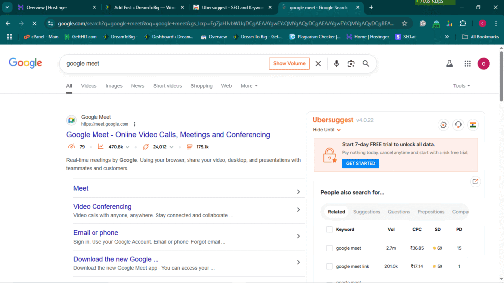 On the next page, you can see the search results of Google Meet before you type in the Google search engine.