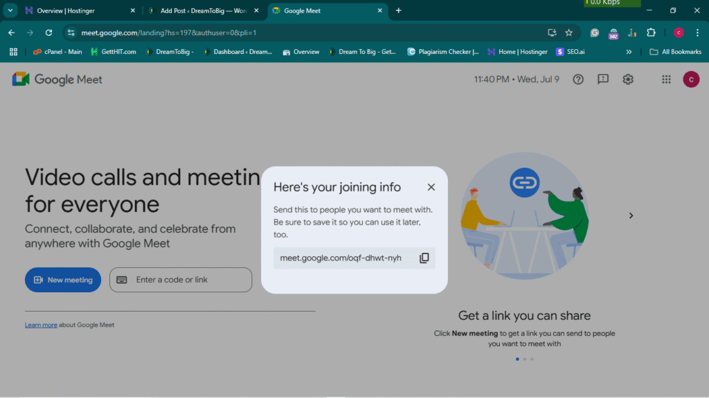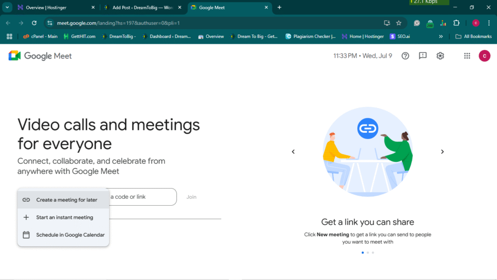 Google Meet: Create a meeting for later